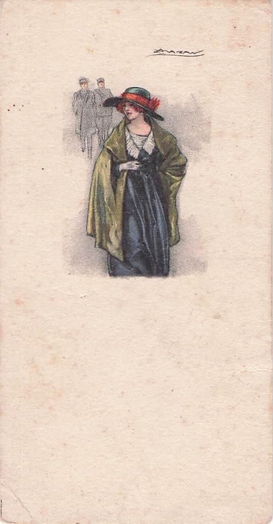 Künstler-Ansichtskarte Mauzan: Junge Dame bemerkt zwei Offiziere, die ihr folgen