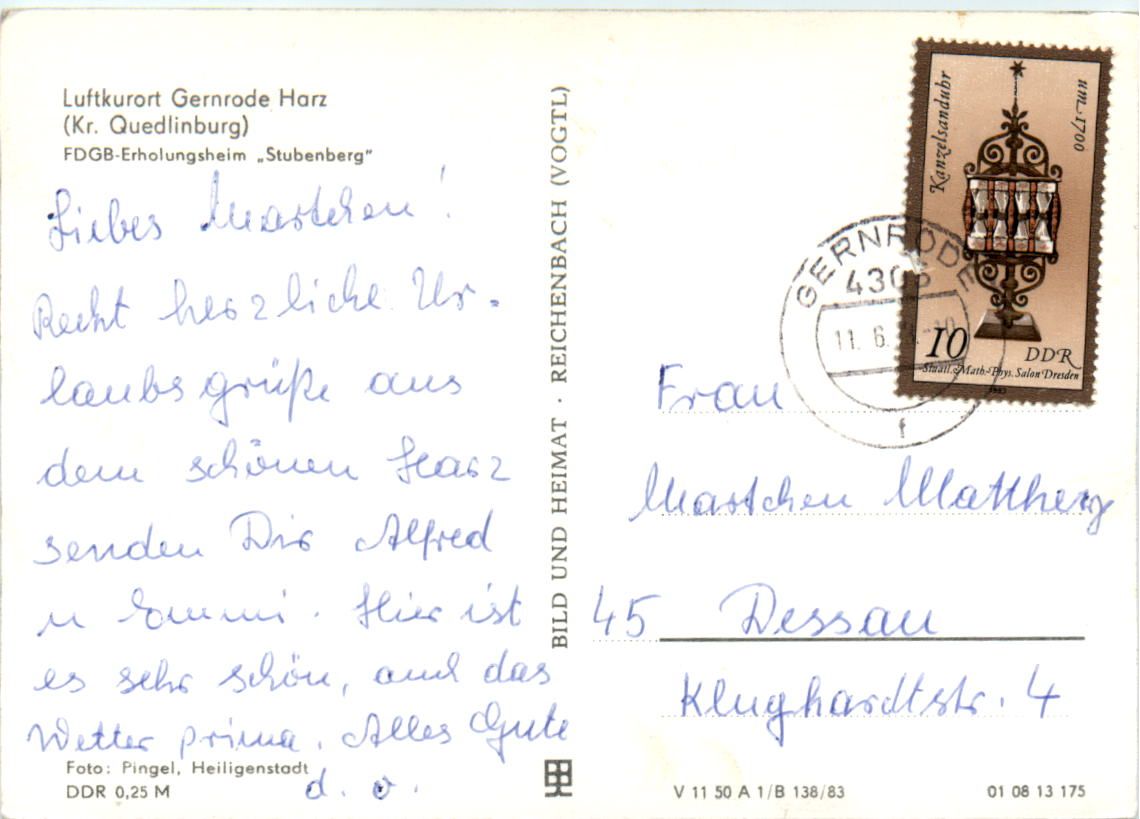 Kurort Gernrode FDGB-Erholungsheim Stubenberg