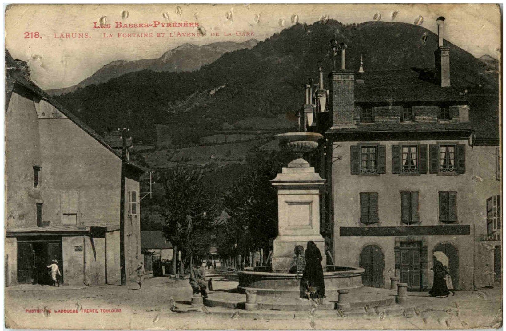 Laruns - La Fontaine et l Avenue de la Gare