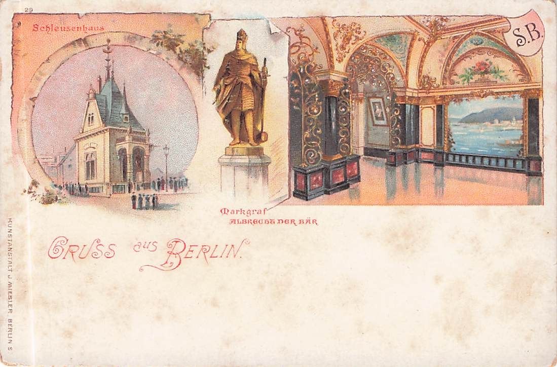 Lithographie Berlin-Tiergarten, Schleusenhaus, Denkmal von Albrecht der Bär