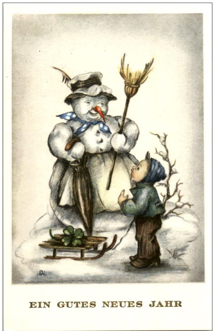 Neujahr - Kind und Schneemann