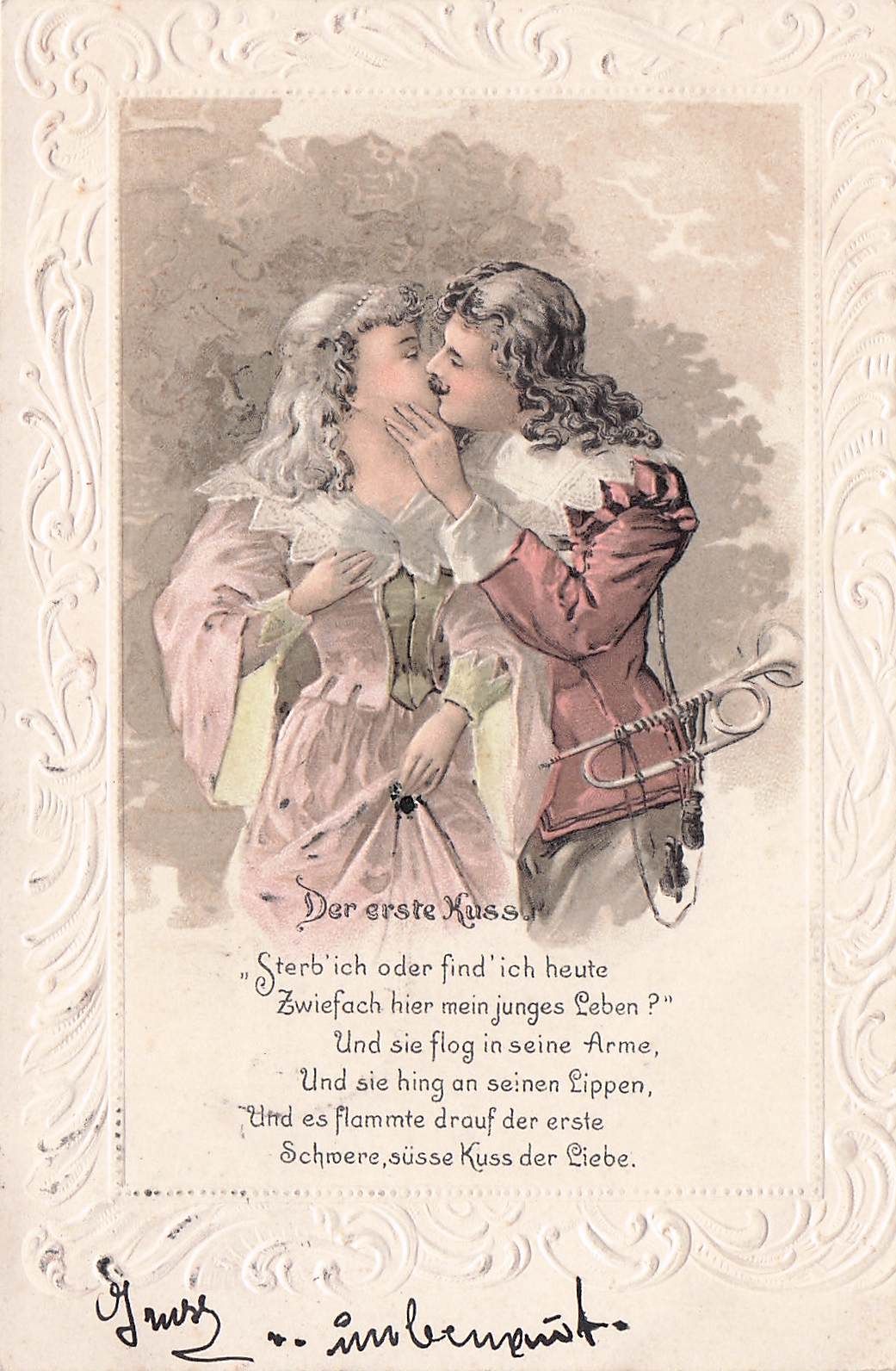 Serie 3945 - der erste Kuss , gute Erhaltung AK Trompeter v.