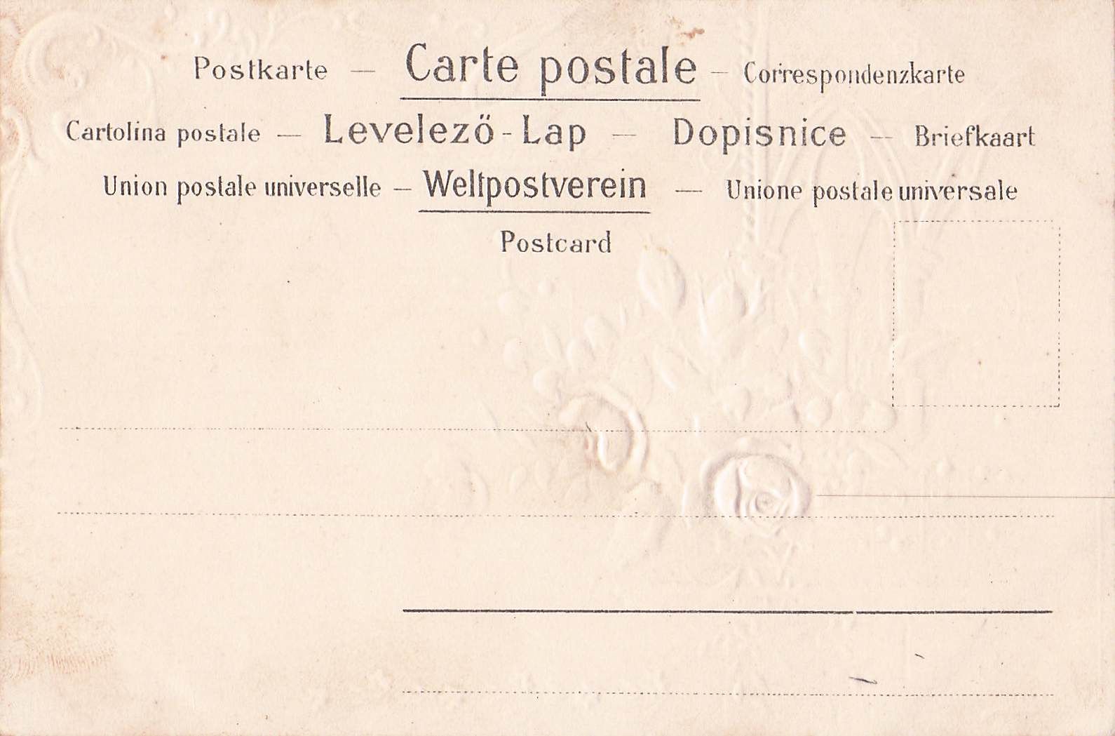 Stoff-Präge-AK Balkon mit Rosen aus Stoff, eine Schwalbe darüber