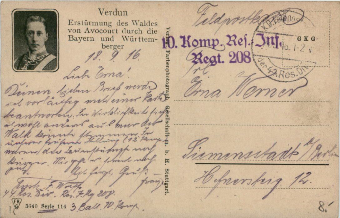 Verdun - Erstürmung des Waldes - eldpost Res. Inf. Regt. 208