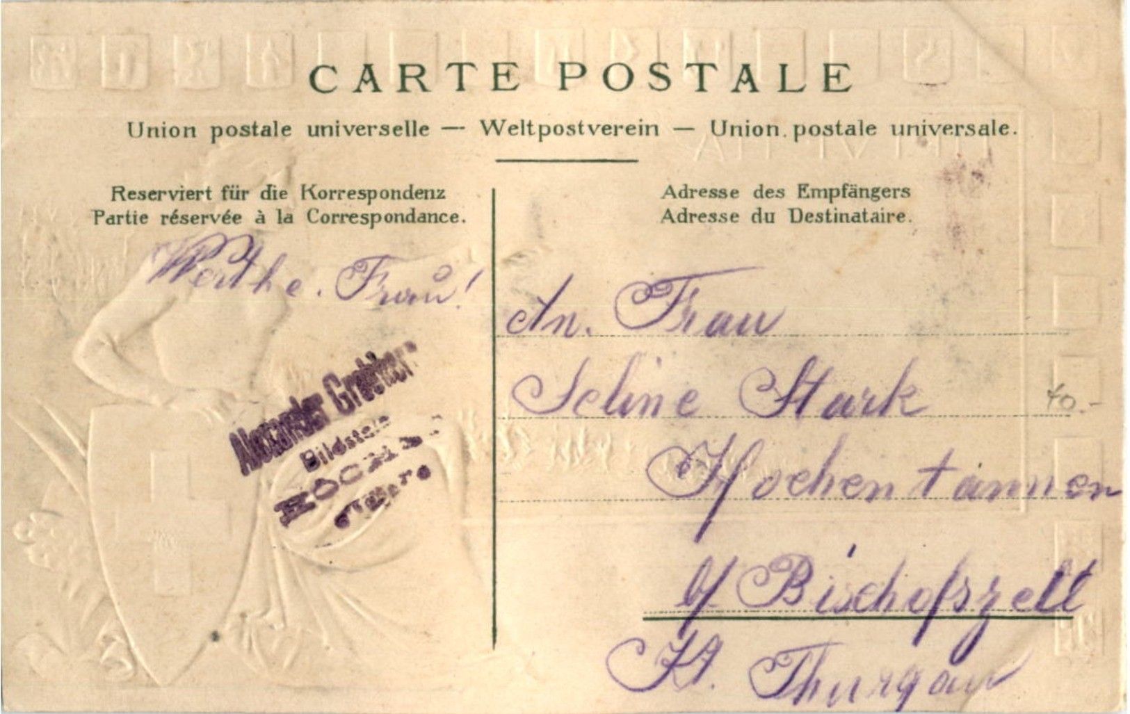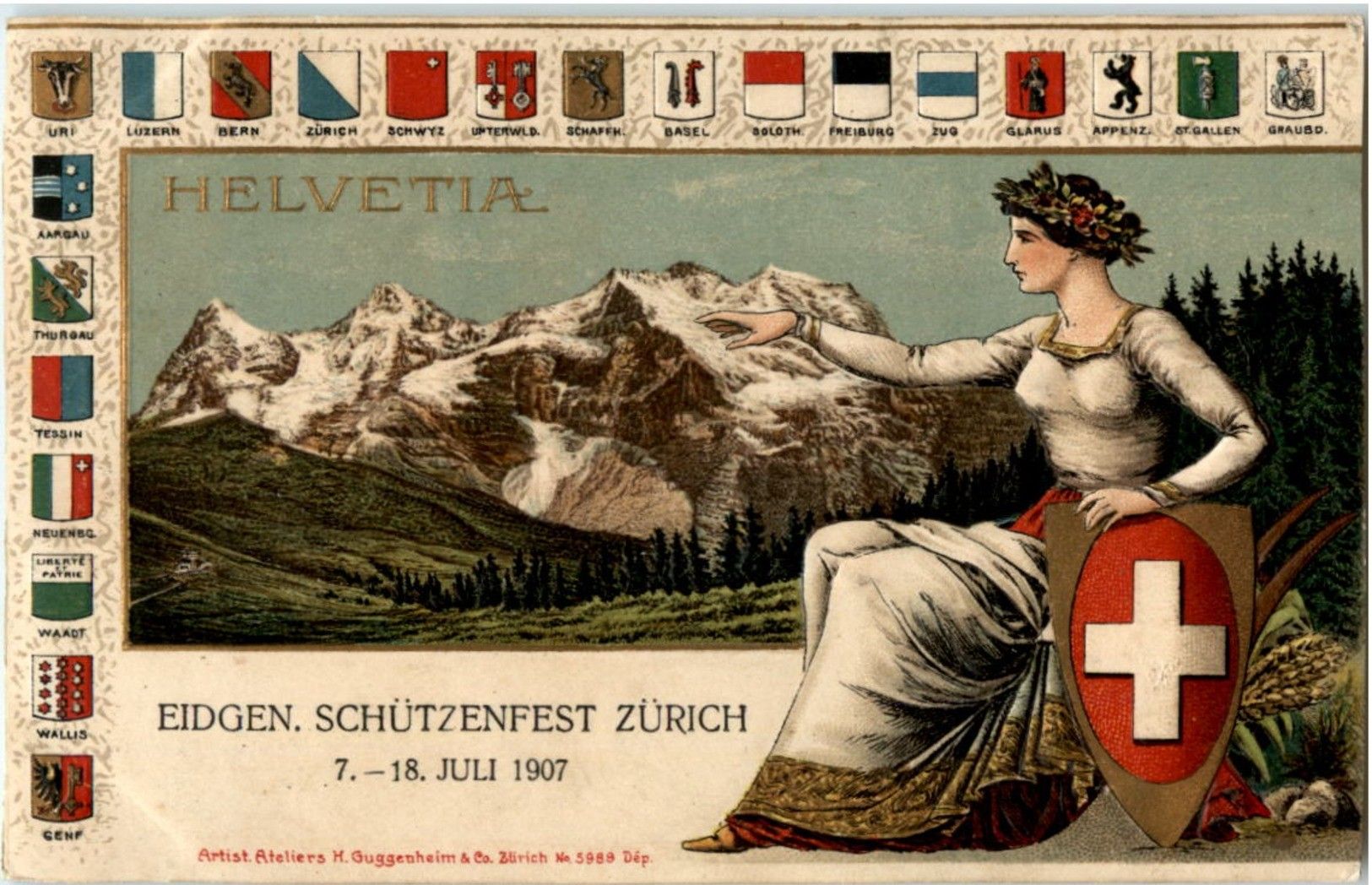 Zürich - Schützenfest 1907 Litho - Prägekarte